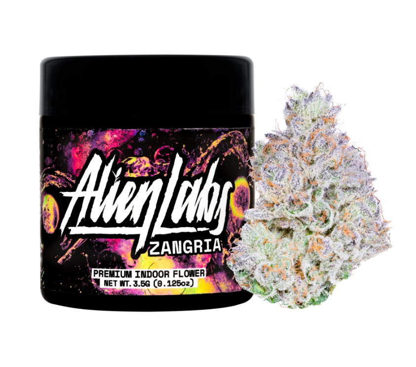 The scent of this flower is otherworldly, a potent fusion that evokes distant memories of alien orchards. Its fragrance hints at luscious, unfamiliar fruits from its Zkittlez ancestry, layered with the warm, doughy undertones of its Girl Scout cookie heritage. The flower itself shimmers under the glow of starlight, its surface coated in crystalline trichomes, casting a cool, metallic grey hue. When dissected, vibrant purples and rich greens glimmer beneath the surface, as if hiding the colors of some extraterrestrial jungle. The taste is a creamy, sugary delight, reminiscent of interstellar confections, contrasted by a mellow, doughy aftertaste that lingers long after consumption. Once inhaled, it floods your system with a tranquil energy, relaxing your body and soothing your mind. Uniquely, Zangria keeps your focus sharp, making it perfect for exploration, whether you’re navigating through daily tasks, night time activities, or the vastness of space.
