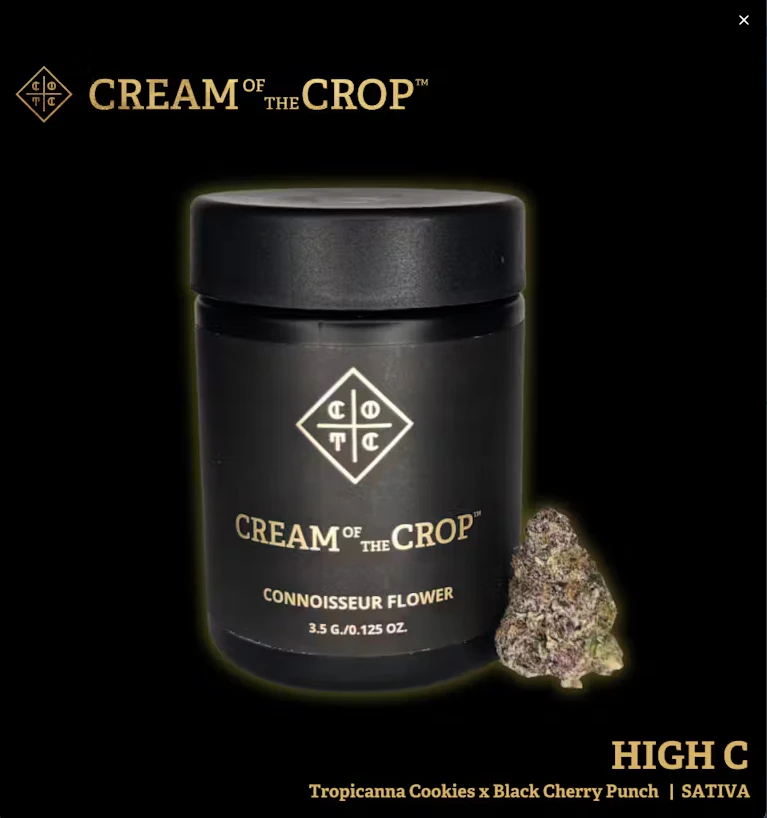 High C is a sativa dominant strain derived from Tropicanna Cookies crossed with Black Cherry Punch. This strain has a delicious creamy, citrus and pine aroma and flavor profile. The top three terpenes of limonene, caryophyllene, and linalool give this strain it’s mood boosting and anti-anxiety properties. If you are looking for a happy cerebral high, then High C is the strain for you!