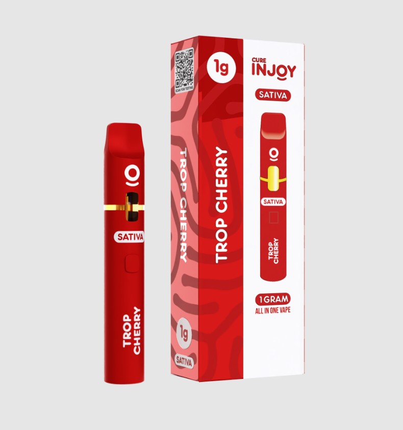 Trop Cherry features a vibrant mix of tart cherry and bright tropical fruit layered with a subtle citrus edge. The inhale brings forward notes of ripe stone fruit with hints of pineapple and light floral undertones. On the exhale, a smooth blend of fruit and gentle herbal character rounds out the profile with a clean, balanced finish.