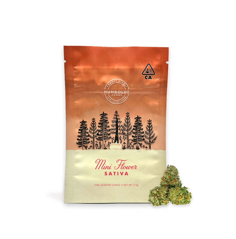 Sativa Flower. This energizing cross of Lemon Tree and Gelato boasts out-of-this-world terpene levels, making it the tastiest pick-me-up. It packs a punch with flavor, with relaxing yet uplifting effects that last through the day. With the same high quality effects as their larger sisters, Mini Flower is the same, exceptional Humboldt Farms flower you’re used to in a smaller package; a great bang for your buck.