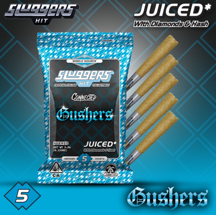 Gushers is the next Sluggers x Connected collab, a perfectly balanced hybrid bred from Triangle Kush x Gelato #41. It delivers an even, feel-good effect that’s equal parts uplifting and relaxing—great for any time you want to stay present without feeling weighed down. Flavor leads the way with a sweet, fruity dessert profile that’s smooth, candy-like, and seriously craveable. Ideal for kicking back with friends, vibing to music, or leveling up your everyday unwind.