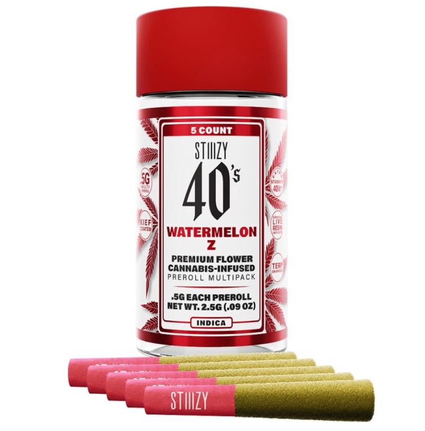 Stiiizy is setting the standard in the pre-roll game with the most revolutionary and innovative products. Elevate your pre-roll game. Stiiizy 40s pre-rolls are setting the standard with high potency, cannabis infused joints coated evenly with kief. Using our proprietary live resin infusion methods, we’ve designed every pre-roll to offer 40%+ THC potency with a unique flavor profile. With a smooth inhale and tasteful exhale, each and every Stiiizy 40 is packed with indoor grown flower, specifically made to ensure a potent and long-lasting high. Spark up the 40s.