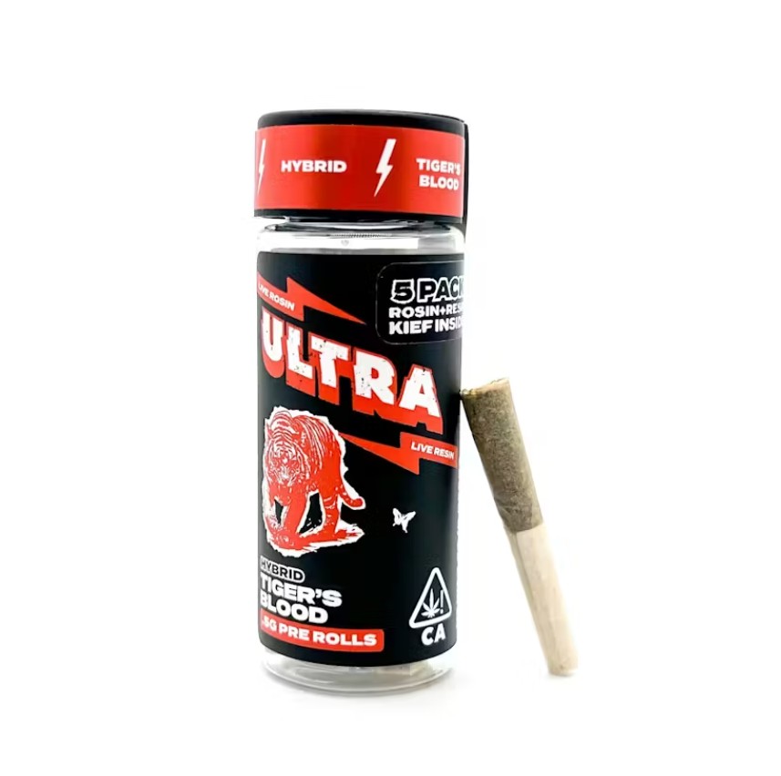 Get ready to go wild with Tiger's Blood - as fierce as its name. A thrilling fusion of live rosin and live resin, these pre rolls deliver a power-packed punch of flavor and potency that surges through your senses. Whether you're scaling mountains, crushing your day, or just seeking a rush, this is your ultimate companion.