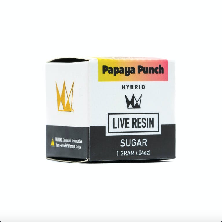 Papaya Punch Live Resin Sugar is an Indica leaning extract that produces a fruity nose, a tropical taste, and is known for cultivating a relaxed mindset. First bred by Nirvana seeds, the Papaya strain is a cross of Corral and Ice. As a live resin sugar, papaya produces a taste of mango and papaya, and has a spicy kiwi finish. The effects tend to be sedative and makes for a relaxing, post-work treat!